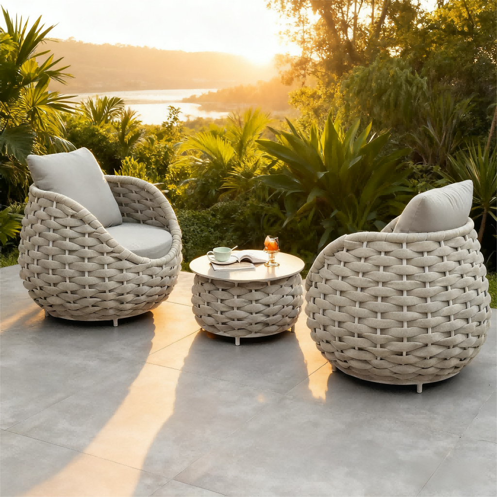 아웃도어 라이프스타일이 증가하면서 디자인과 편안함을 겸비한 아웃도어 가구를 찾는 사람들이 늘어나고 있습니다.이를 위해 우리는 정원, 발코니, 테라스에 활력을 불어넣을 수 있는 자연스러운 손으로 짠 직조와 현대적이고 미니멀한 디자인이 특징인 새로운 로프 야외 소파 컬렉션을 자랑스럽게 소개합니다.